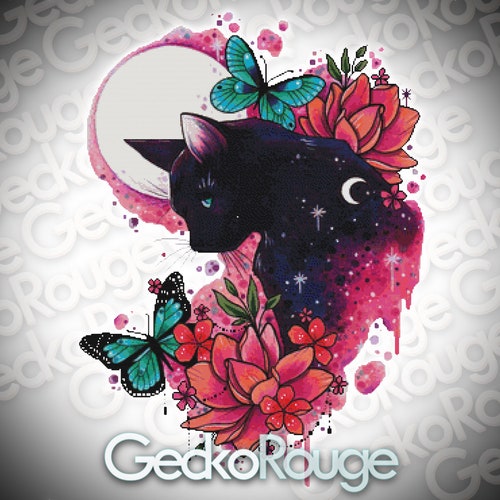 Black Cat And Butterflies By Lorna Laine Modern Cross Stitch Etsy Uk